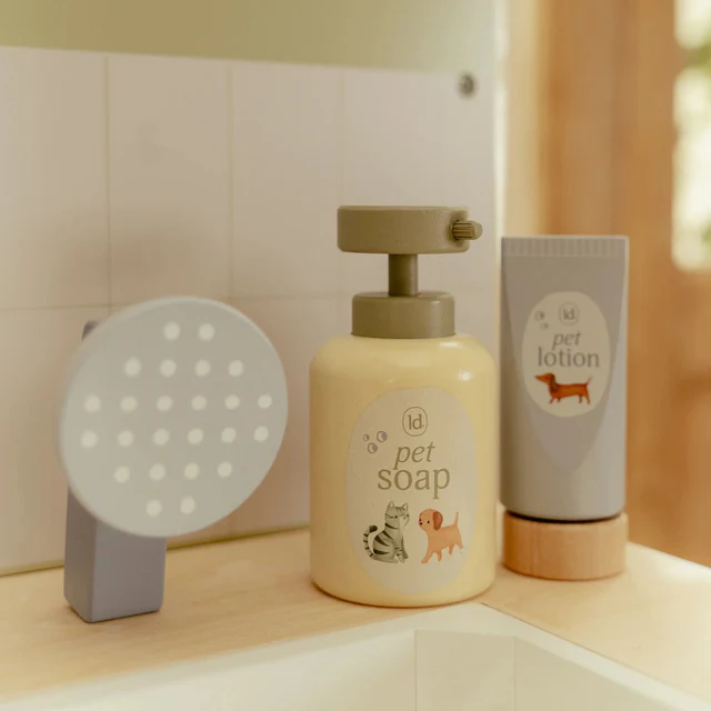Prenez-vous bien soin des peluches et des jouets d'animaux malades ? Avec ce cabinet vétérinaire en bois complet de Little Dutch, votre petit peut se plonger dans le rôle d'un véritable vétérinaire. Le set contient tout ce qu'il faut pour s'occuper des animaux de compagnie, comme une douchette extensible avec lavabo, un peigne, un thermomètre, une seringue et des pansements. Sont également inclus un bandeau en tissu et une pince spéciale pour accrocher des illustrations médicales et des radiographies. C'est l'heure du prochain patient !