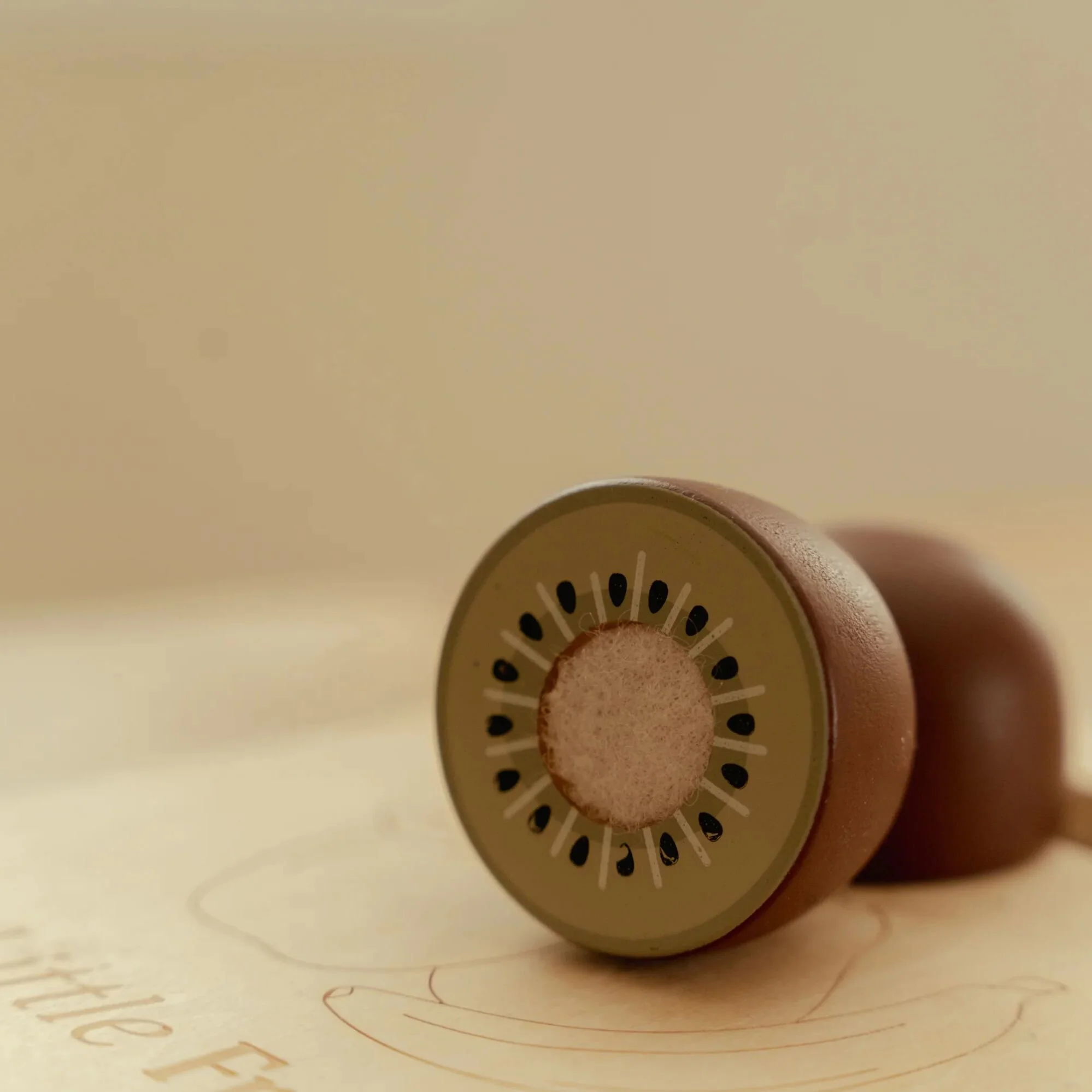 Mangez cinq fruits et légumes par jour ! Votre enfant adorera vous imiter en préparant à manger avec ce joli set de 6 fruits différents de Little Dutch. Une planche à découper et un couteau en bois sont fournis pour couper les fruits en deux et découvrir ce qui se cache à l’intérieur. Pomme, banane, kiwi, poire, orange ou pastèque : vous n’avez que l’embarras du choix ! Tous les fruits se recollent facilement à l’aide du scratch.