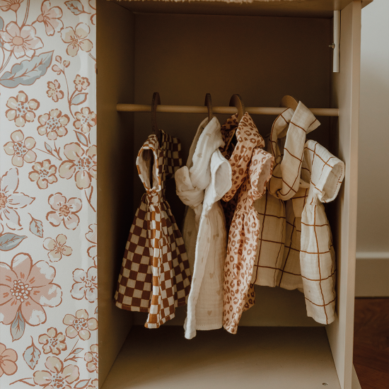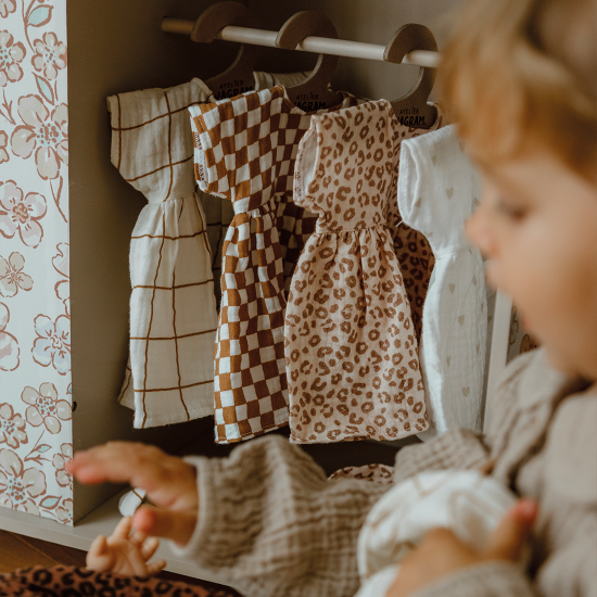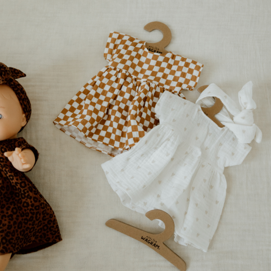 Découvrez notre collection de jolies tenues personnalisées pour habiller ses poupées préférées ! Nous, on craque pour cette jolie robe et ses petits cœurs !